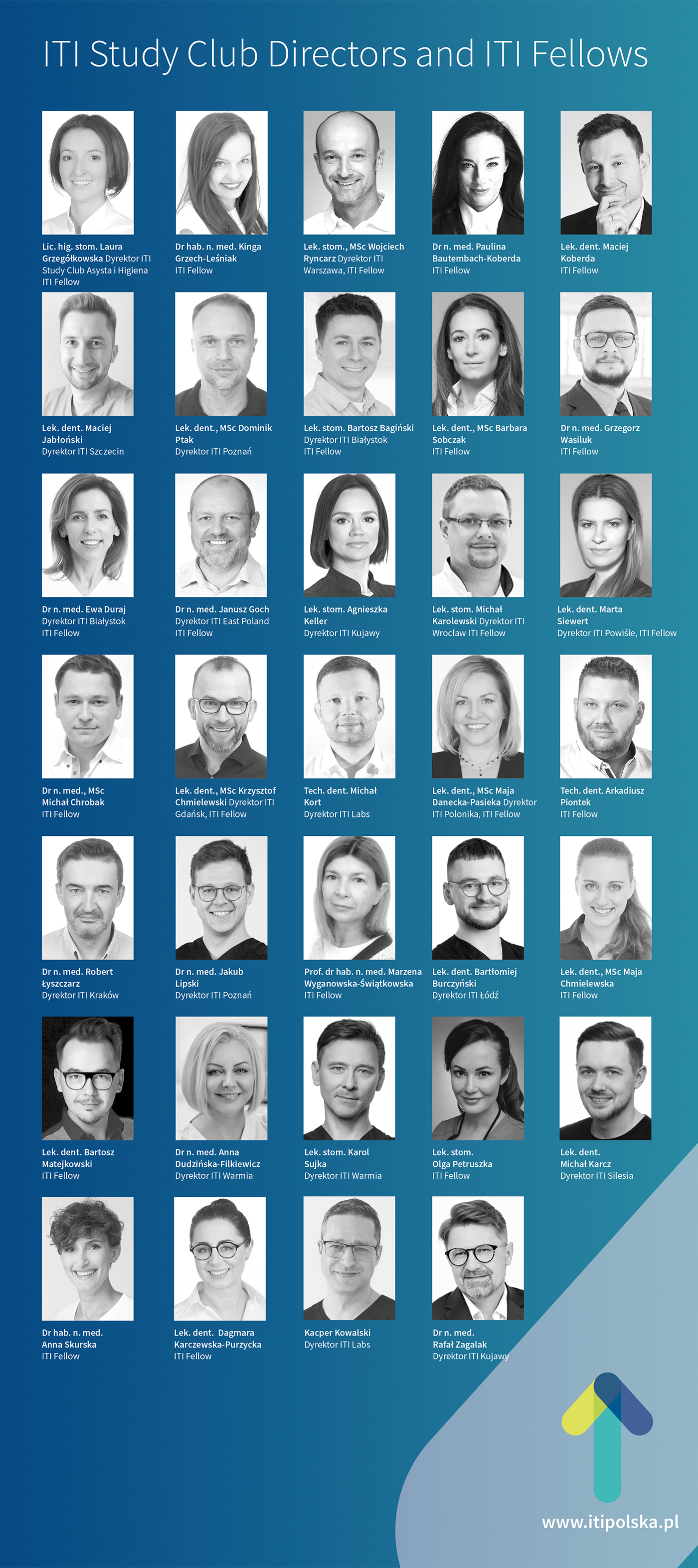 Najlepszym sposobem, aby dowiedzieć się co ITI oferuje na terenie całej Polski jest dołączenie do lokalnego Study Club. Zachęcamy do wzięcia udziału w kolejnych spotkaniach ITI Study Club, aby pogłębić swoje umiejętności oraz miło spędzić czas w gronie innych lekarzy. ITI Study Club są najlepszym sposobem, aby wymieniać doświadczenia dotyczące implantologii.